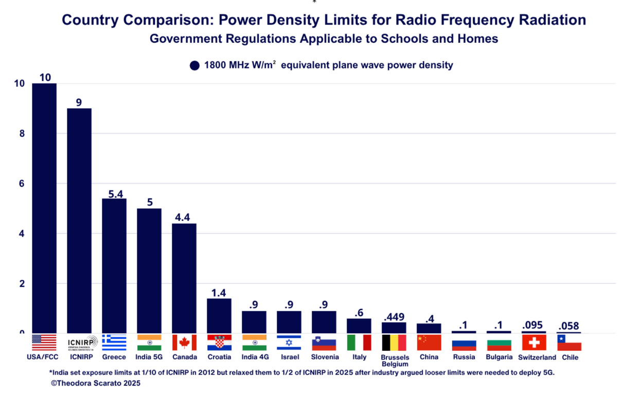 Most countries set wireless radiation limits 100× to 1,000× stricter than the United States. The FCC's limits haven't been updated since 1996.